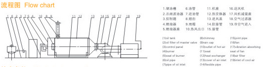 燃料通過燃燒器燃燒,產(chǎn)生高溫燃氣。并借助具有強化換熱措施的熱風爐將高溫燃氣的熱量傳導給被加熱的空氣,高溫燃氣經(jīng)熱量散發(fā)后溫度降低至250℃后排到大氣中。需加熱的空氣通過選配的鼓風機強送入熱風爐,吸熱后溫度升至額定值從熱風出口處送出,當熱風溫度達到額定溫度上限時,燃燒器會自動停止燃燒或自動轉為小火焰燃燒,當熱風溫度降低到額定下限溫度時,燃燒器又會重新點燃運行或轉為大火燃燒,升溫的速度可以調(diào)節(jié)進風閥的開度來實現(xiàn)。