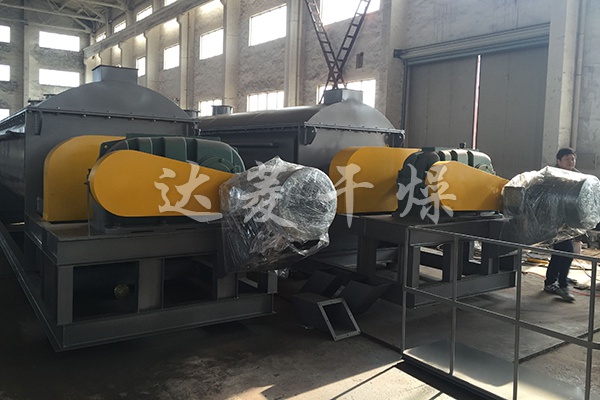空心軸上密集排列著楔型中空槳葉,熱介質(zhì)經(jīng)空心軸流經(jīng)槳葉。單位有效容積內(nèi)傳熱面積很大,熱介質(zhì)溫度從-40℃到320℃,可以是水蒸汽,也可以是液體型:如熱水、導(dǎo)熱油等。間接傳導(dǎo)加熱,沒有攜帶空氣帶走熱量,熱量均用來加熱物料。熱量損失僅為通過器體保溫層向環(huán)境的散熱。楔型 槳葉傳熱面具有自清潔功能。物料顆粒與楔型面的相對(duì)運(yùn)動(dòng)產(chǎn)生洗刷作用,能夠洗刷掉楔型面上附著物料,使運(yùn)轉(zhuǎn)中一直保持著清潔的傳熱面。槳葉干燥機(jī)的殼體為W型,殼體內(nèi)一般安排二到四根空心攪拌軸。殼體有密封端蓋與上蓋,防止物料粉塵外泄及收集物料溶劑蒸汽。出料口處設(shè)置一擋扳,保證料位高度,使傳熱面被物料覆蓋而充分發(fā)揮作用。熱介質(zhì)通過旋轉(zhuǎn)接頭,流經(jīng)殼體夾套及空心攪拌軸,空心攪拌軸依據(jù)熱介質(zhì)的類型而具有不同的內(nèi)部結(jié)構(gòu),以保證好的傳熱效果。